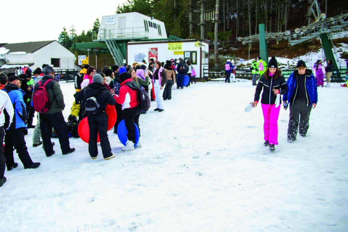 The�buses�from�Naples�arrive�in�a�steady�stream,�unloading�thousands�of�people�in�brightly-coloured�ski�outfits�into�the�small�town�nestled�in�the�mountains�of�central�Italy....